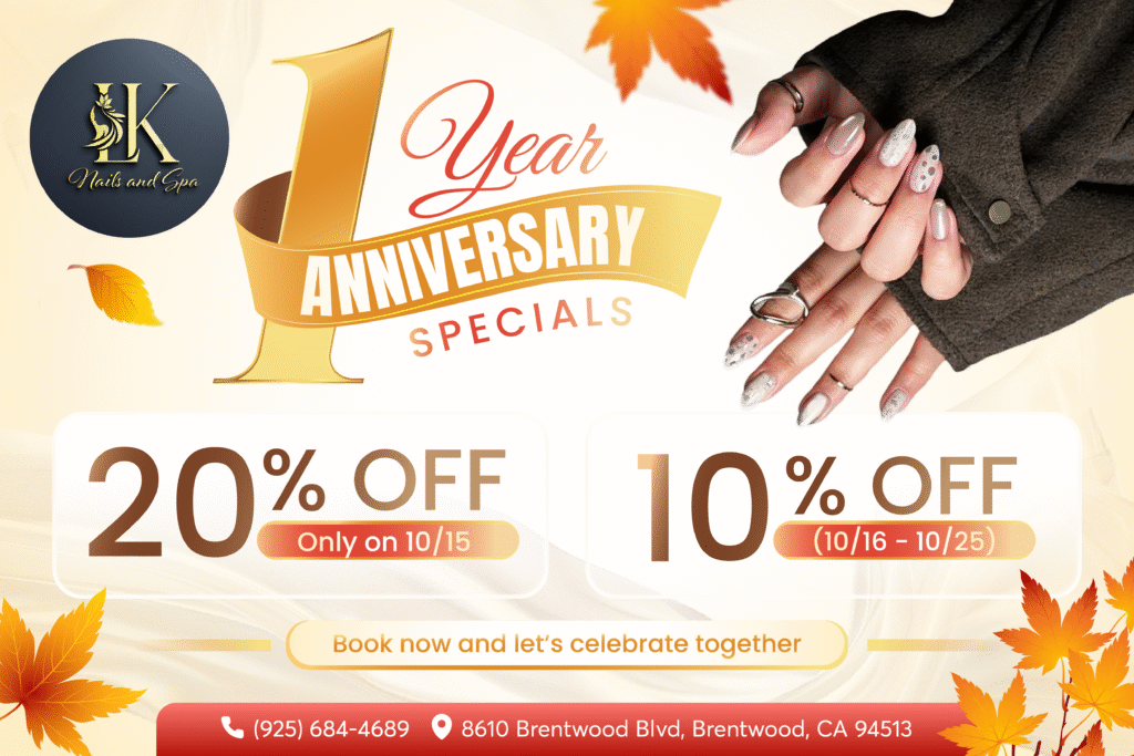 Welcome to L&K Nails & Spa, a premier nail salon located at 8610 Brentwood Blvd, Brentwood, CA 94513. We specialize in a variety of services, including manicures, pedicures, acrylics, dipping powder, nail design, and Gel X. With over 50 stunning color choices, we offer both gel and regular polish options, allowing you to select shades that fit every style and season. Our technicians are highly trained and focus on delivering sophisticated, elegant nail designs with an updated, modern approach.